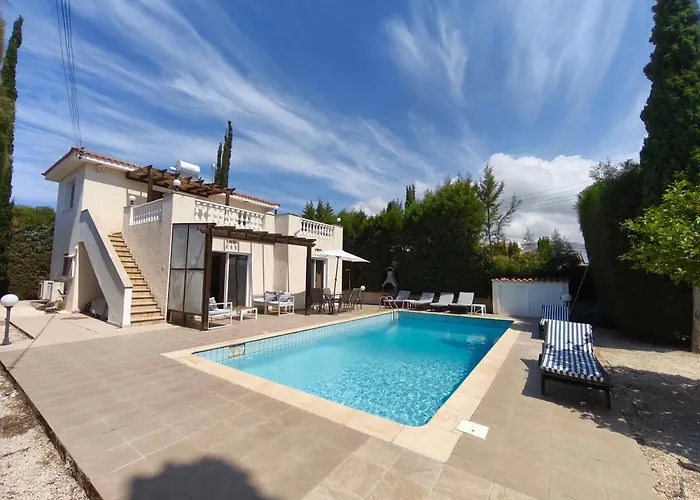 A 2 fürdőszobás villa továbbá közvetlen szomszédságra van a Chlorakas 8 buszmegállótól.